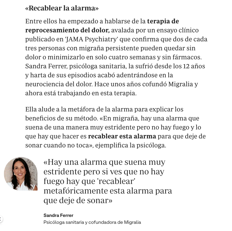 «La migraña no solo limita, también estructura. Nos da excusas para frenar, nos evita conflictos, nos permite decir no sin tener que justificarnos. Soltarla implica cuestionar formas de vivir que nos han dado seguridad, aunque sea a costa de nuestro cuerpo. En Migralia no buscamos anestesiar el síntoma, sino acompañarte a soltar lo que lo hace necesario.»